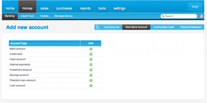 1. Head to Money>Banking>Add Account and select a new ‘Internet Payments’ account.