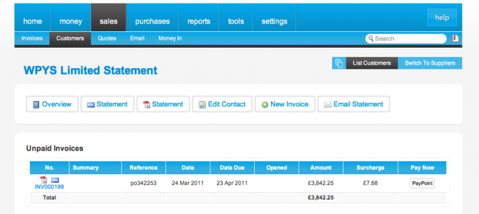 When a customer receives a statement from you they will be able to click the ‘PayPoint’ button to then make an ‘Online Payment’ directly to your account.